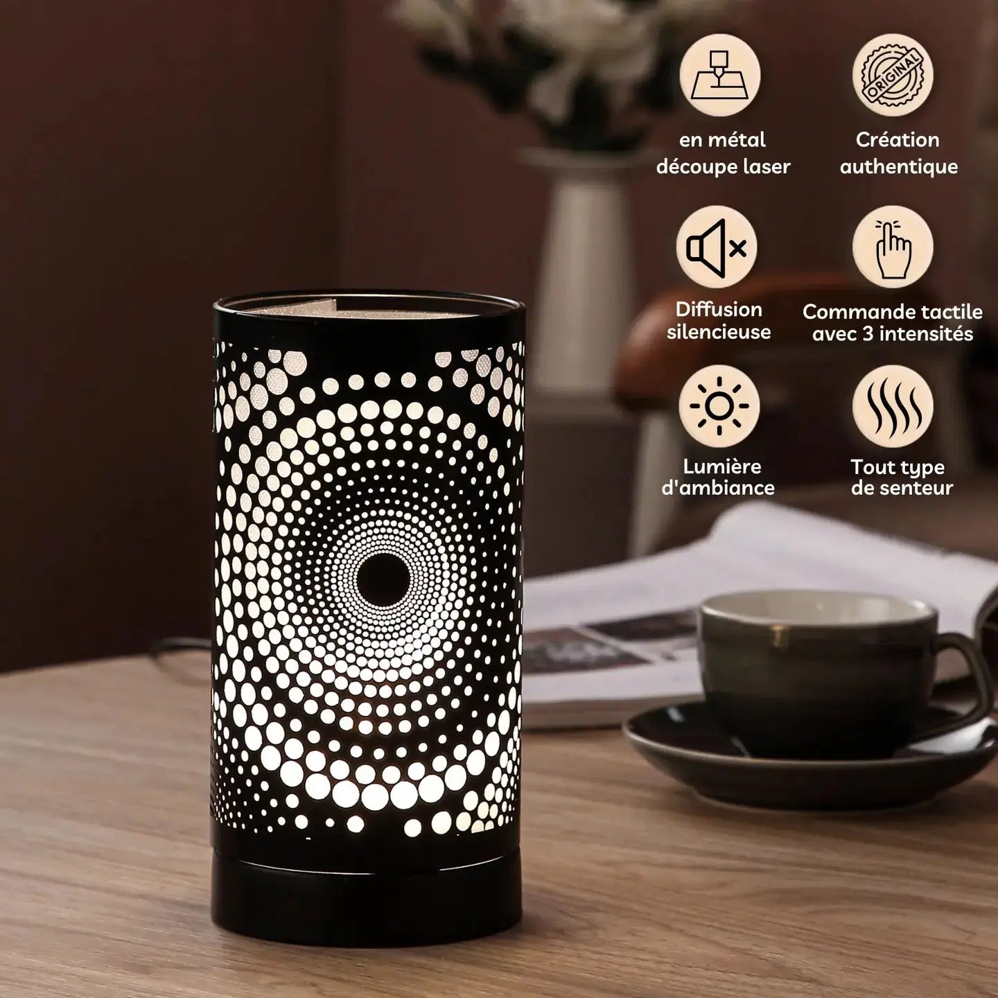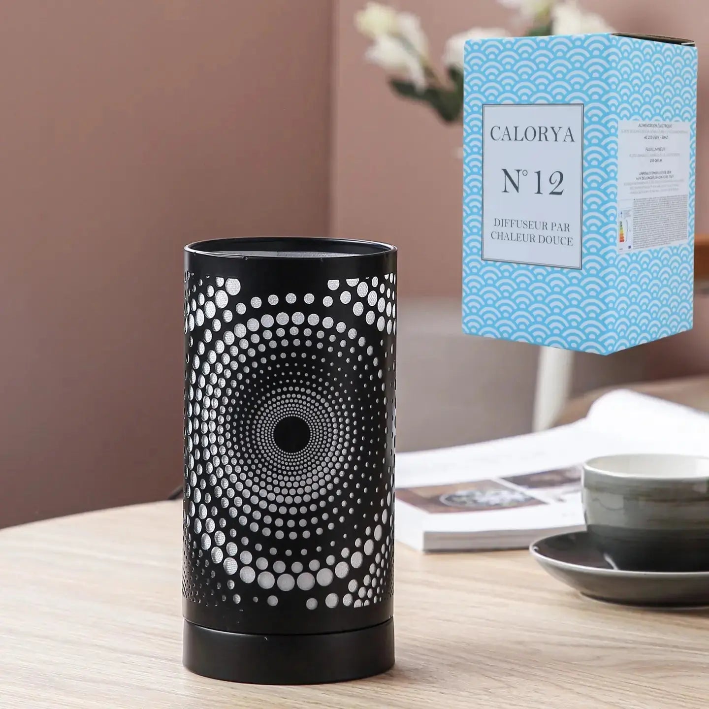Pourquoi choisir le Calorya métal ? • Diffuseur de parfum : embaumez rapidement la pièce avec vos parfums d'ambiance. • Diffuseur d'Huiles essentielles : commande tactile à 3 intensités pour une diffusion douce et maîtrisée, préservant les vertus des senteurs. • Brûleur à cire : faire fondre les cires pour une ambiance délicatement parfumée. • Design élégant : fabriqué en métal découpé au laser, il projette une lumière envoûtante.